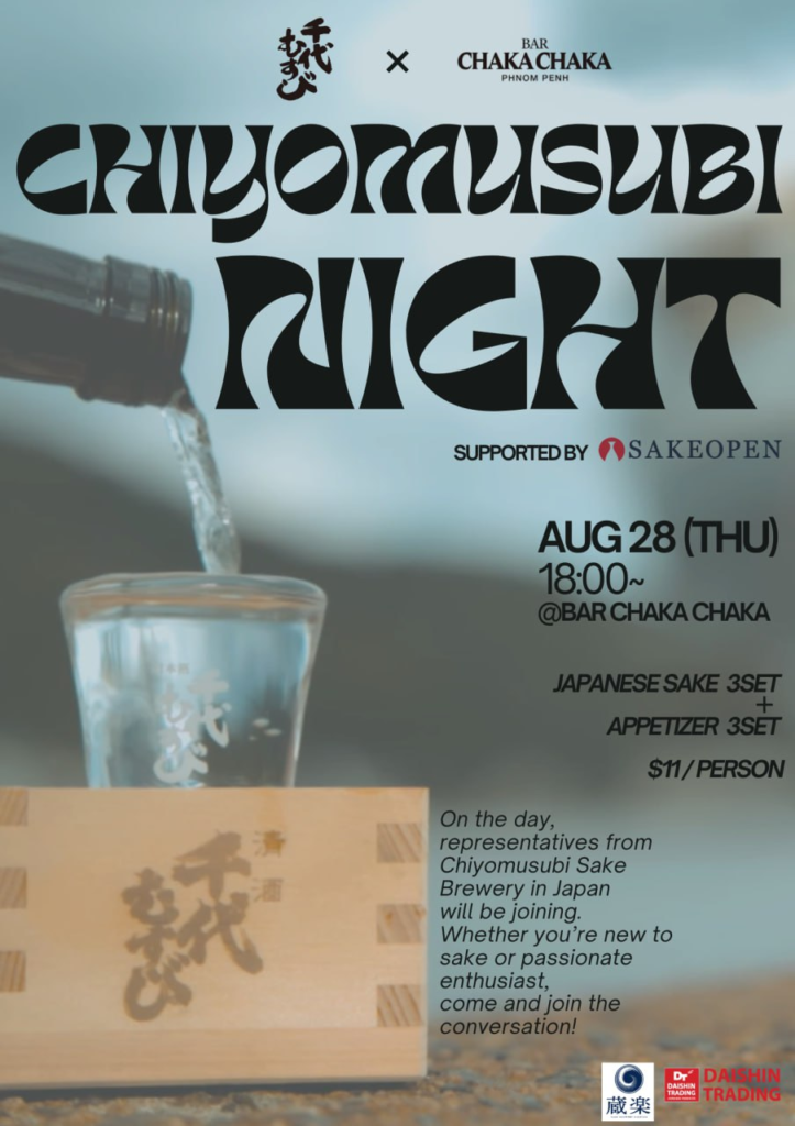 2025年8月27(水)と28日(木)の2日間にわたり、カンボジアのプノンペンにて特別日本酒イベント「CHIYOMUSUBI Night」を開催いたしました。