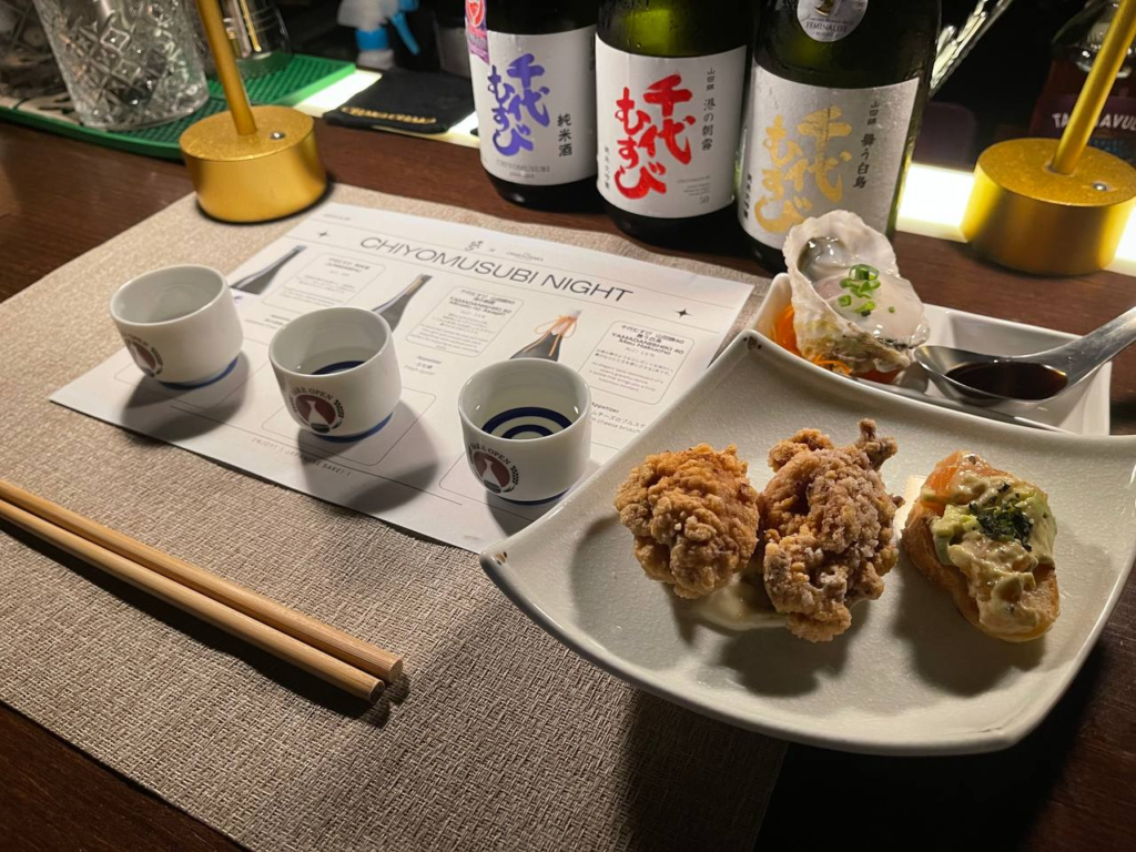 2日目の8月28日は、プノンペンの超人気日系バー「BAR CHAKA CHAKA」様にてカジュアルなコーナーバースタイルで開催しました。こちらは千代むすび酒造様の日本酒3種とアペタイザー3種のセットをご提供する形式です。