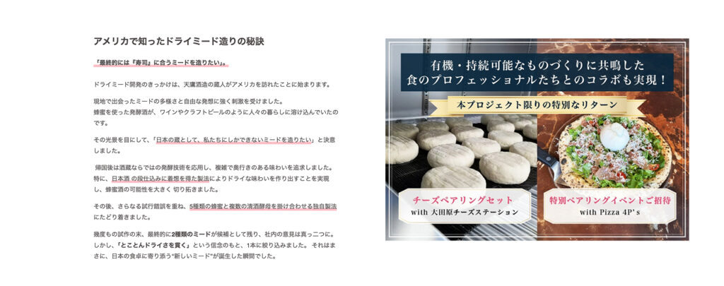 単なる商品販売ではなく、「食中酒としてドライミード」を体験してもらうためのリターン設計も行いました。